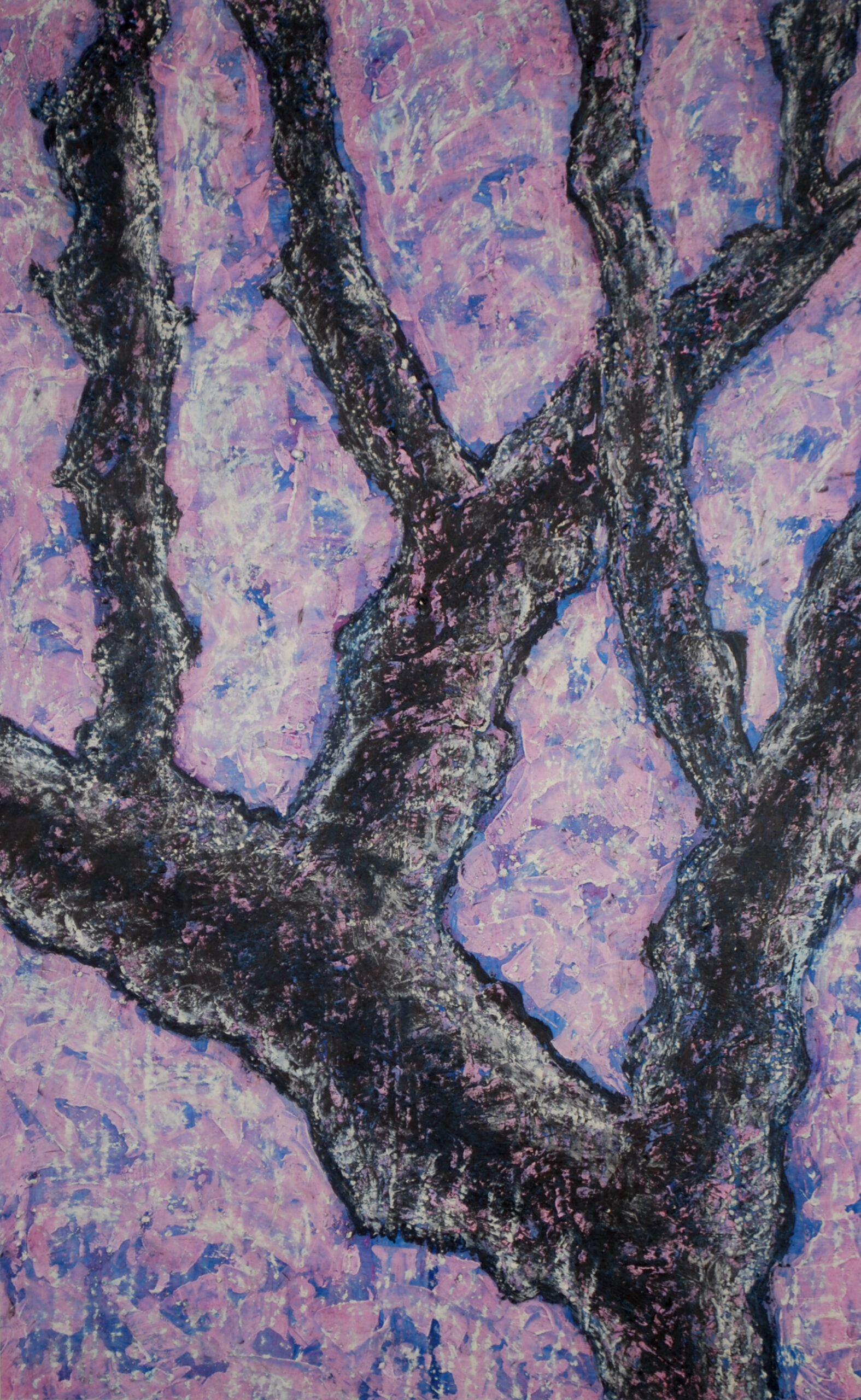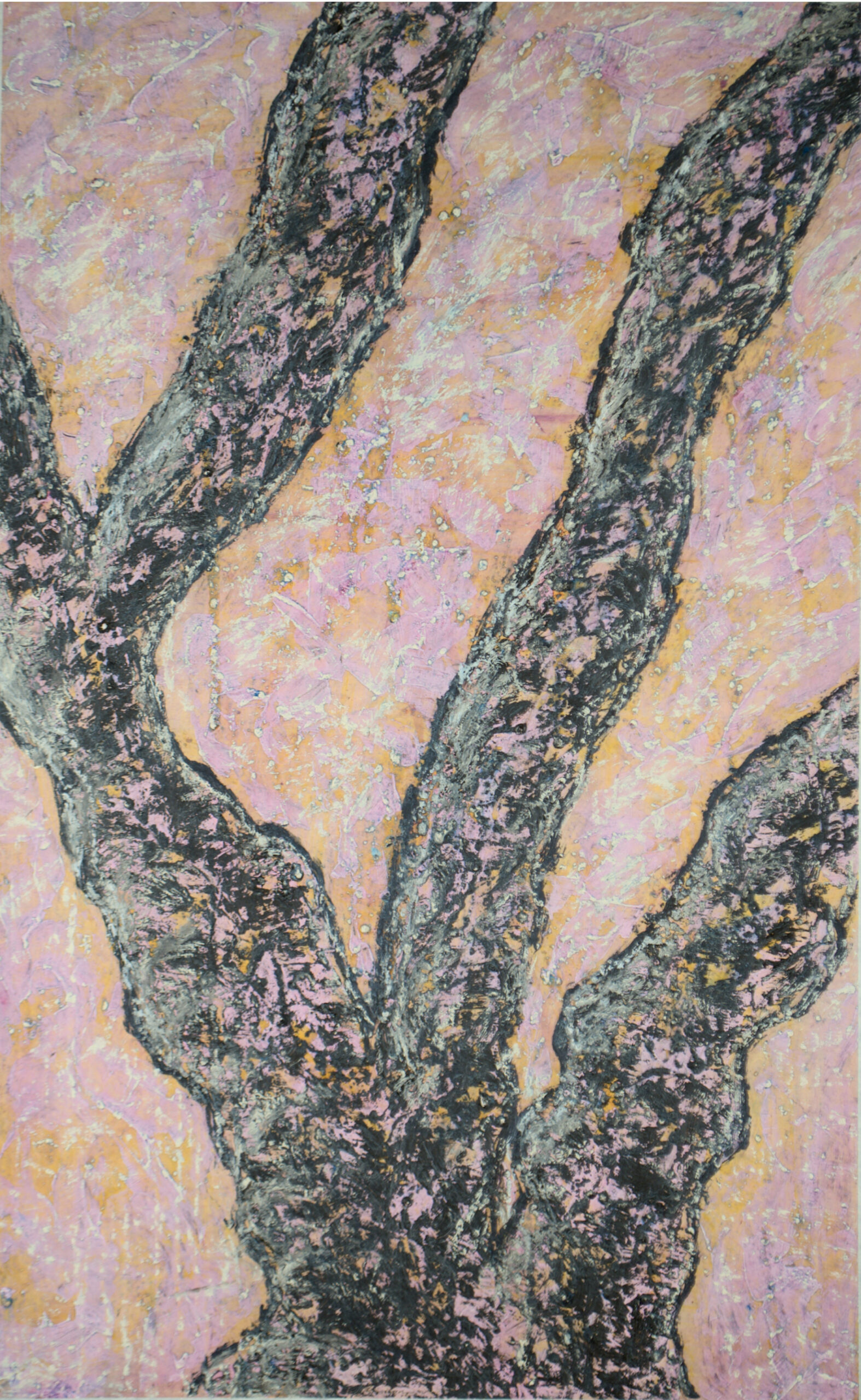 Cherry Trunks, no.1 • 2025 • Acrylic, oil, and wax on paper • 95 x 56cm