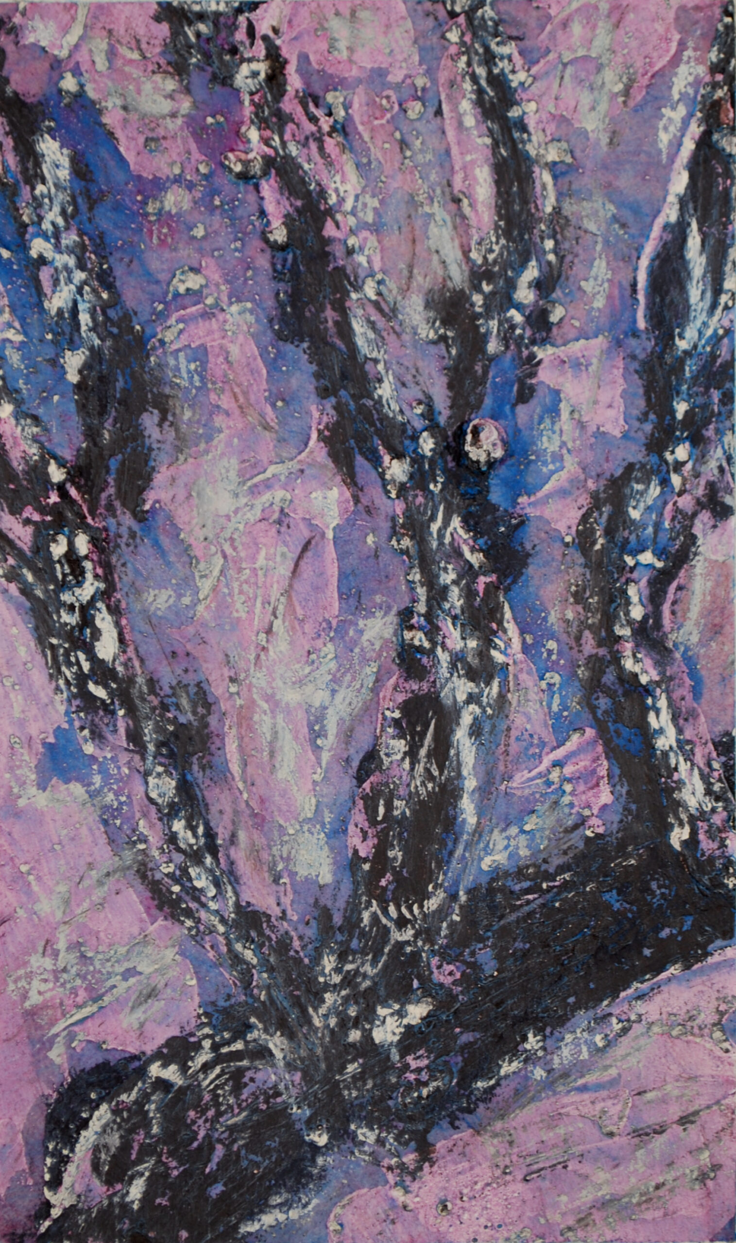 Cherry Trunks, sm. no.17 • 2025 • Acrylic, oil, and wax on paper • 25 x 15cm