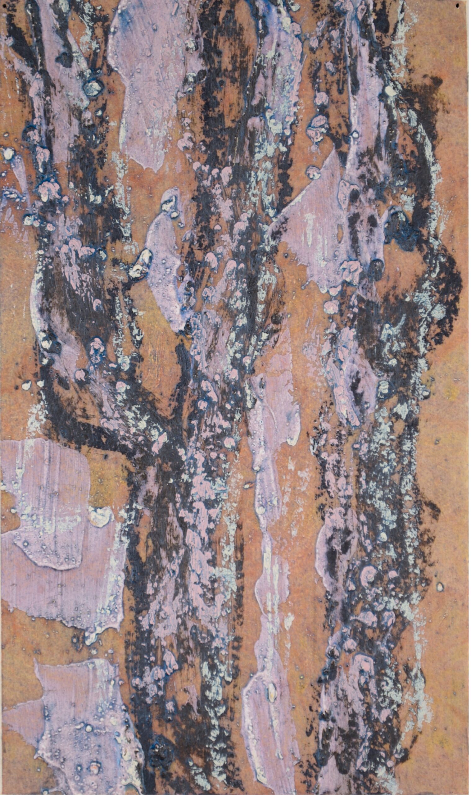 Cherry Trunks, sm. no.18 • 2025 • Acrylic, oil, and wax on paper • 25 x 15cm